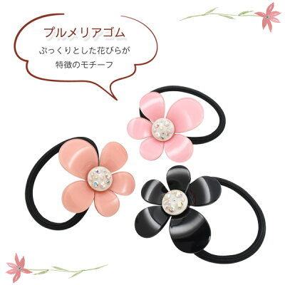 メール便送料無料【 ヘアゴム プルメリア 】 ラインストーン 大人 立体 髪ゴム 髪飾り ヘアアクセサリー レディース 女性 ロング 上品 かわいい おしゃれ ビジネス フォーマル デイリー オフィス ヘアアレンジ シンプル 大人っぽい ぷっくり シンプル